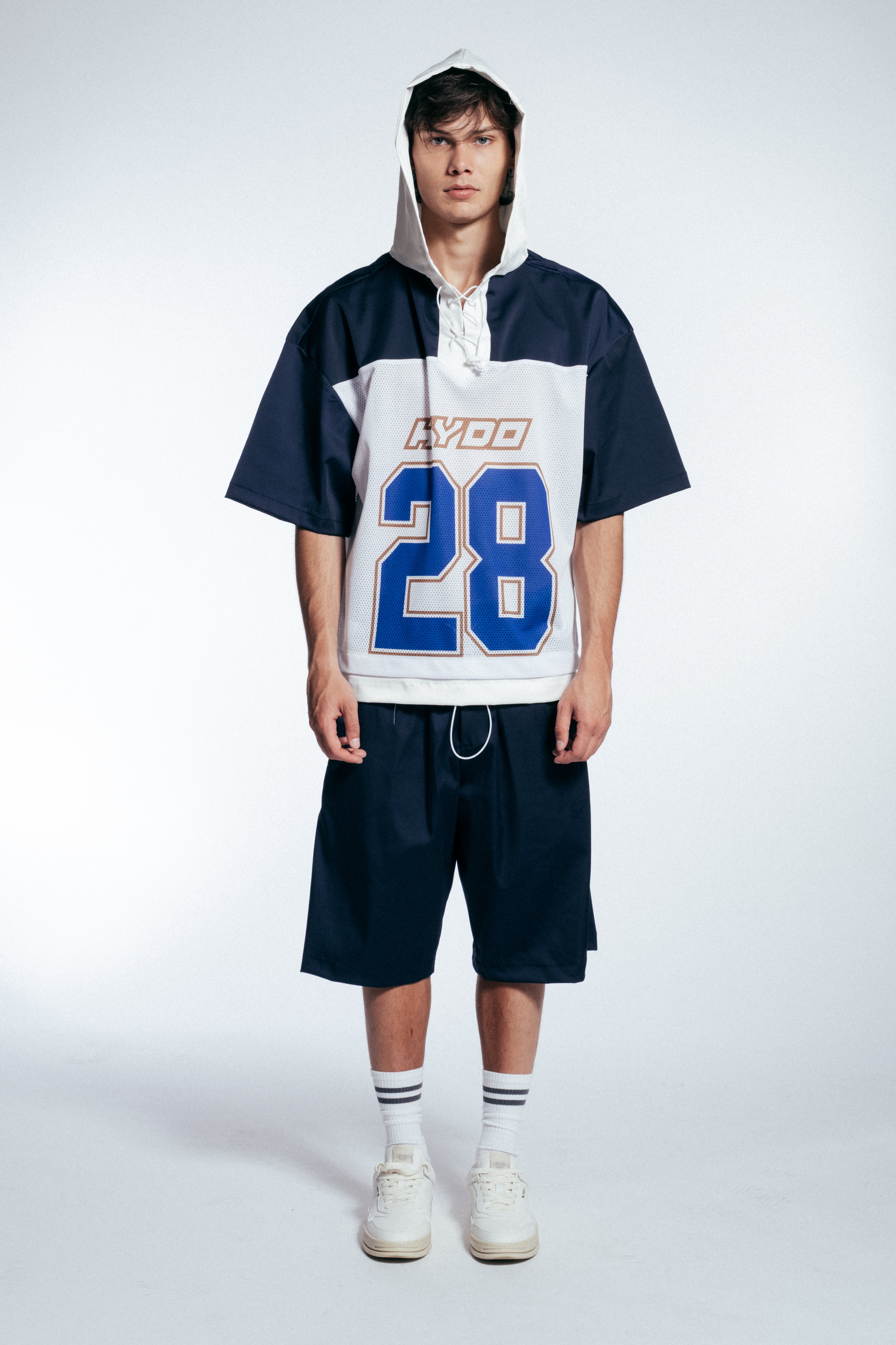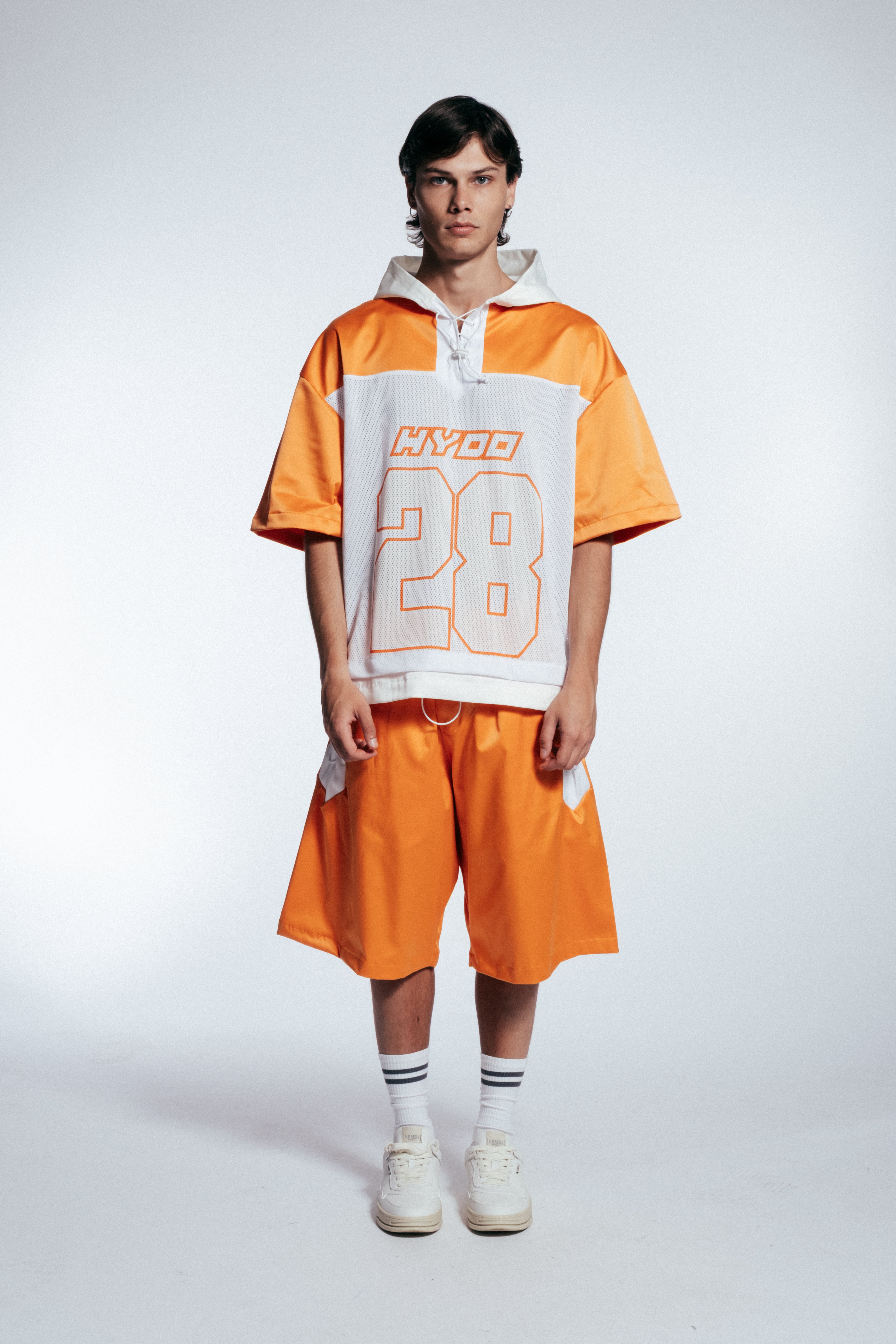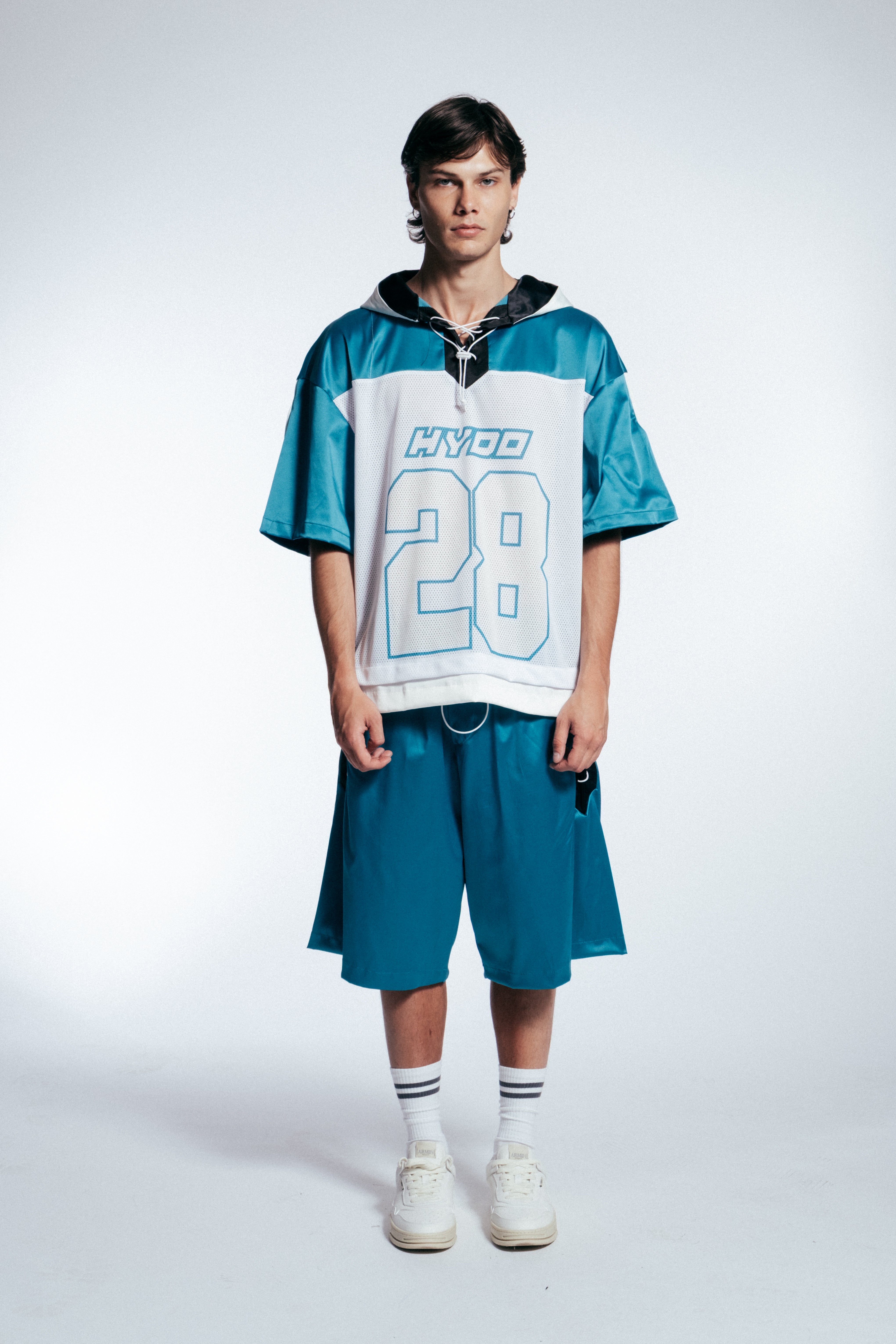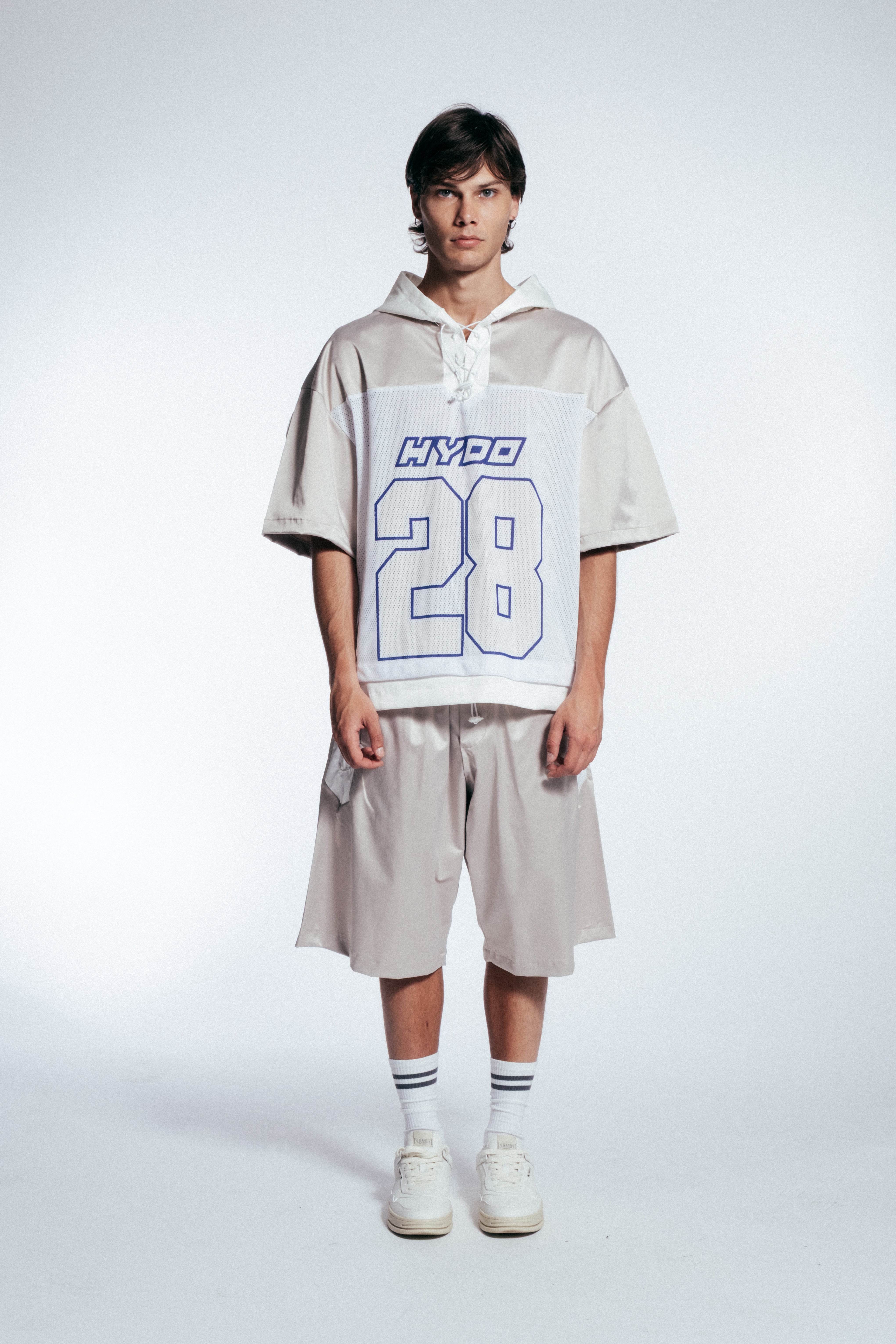 HYDO lavora con una varietà di materiali tra cui cotone, denim, tessuti tecnici e fibre elasticizzate.